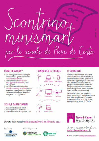 Parte il 1 di novembre la campagna Scontrino Minismart per le scuole di Pieve di Cento. DI CHE SI TRATTA?…
